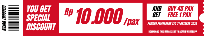 - FREE of CHARGE 1 Pembimbing/ Guru per bus (khusus rombongan pelajar/ mahasiswa minimal 45 pax/bus)